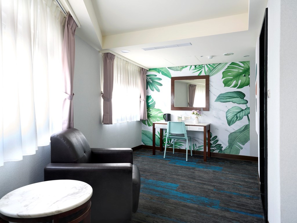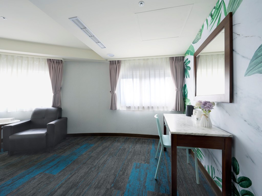 各客室は、その名にふさわしく 華麗 のように華やかで、旅人の夜の拠り所として丁寧に設えられています • ソファとエアコン完備 • 最大宿泊人数:2名 • ベッドタイプ:スタンダードシングルベッド2台 • 客室面積:16 ㎡